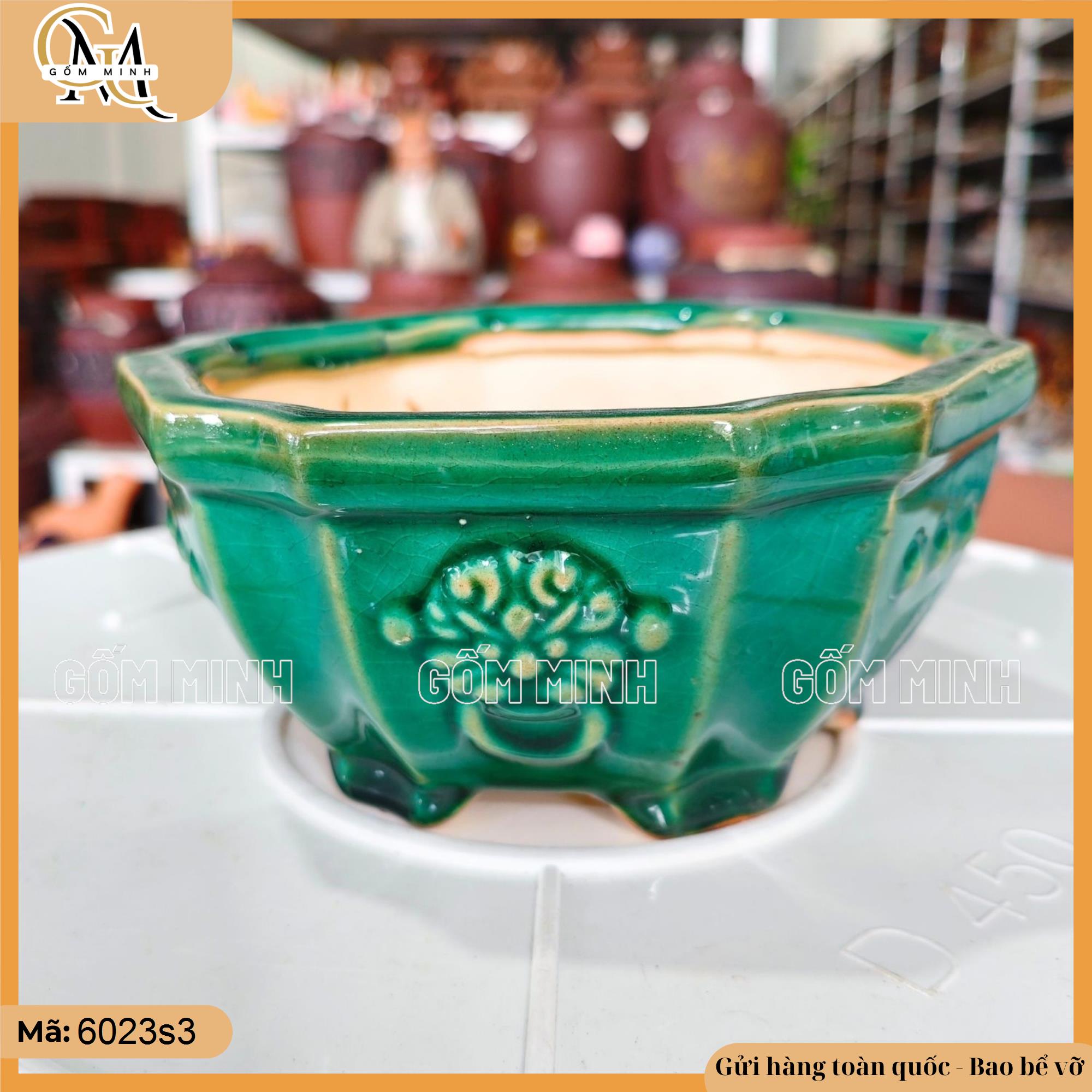 Chậu lục giác bi men xanh