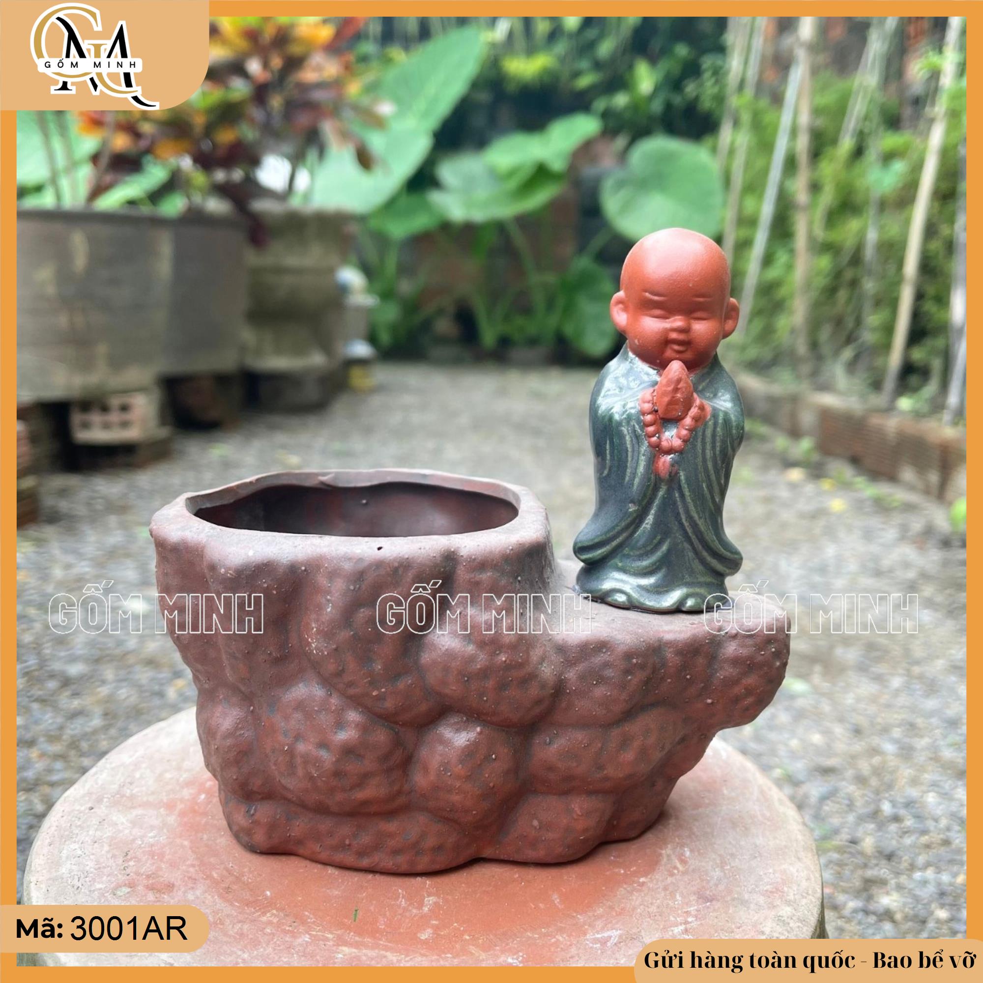 Ý nghĩa: Hình ảnh chú tiểu tượng trưng cho sự an lạc, tĩnh tâm và bình yên trong cuộc sống, rất phù hợp để làm chậu phong thủy. Những chậu chú tiểu mini không chỉ đẹp về mặt hình thức mà còn giúp gia chủ thu hút năng lượng tích cực, mang lại sự thanh thản và cân bằng trong không gian sống. Việc kết hợp tượng chú tiểu với cây xanh, đặc biệt là bonsai, giúp tăng cường sự hài hòa và thanh thoát.