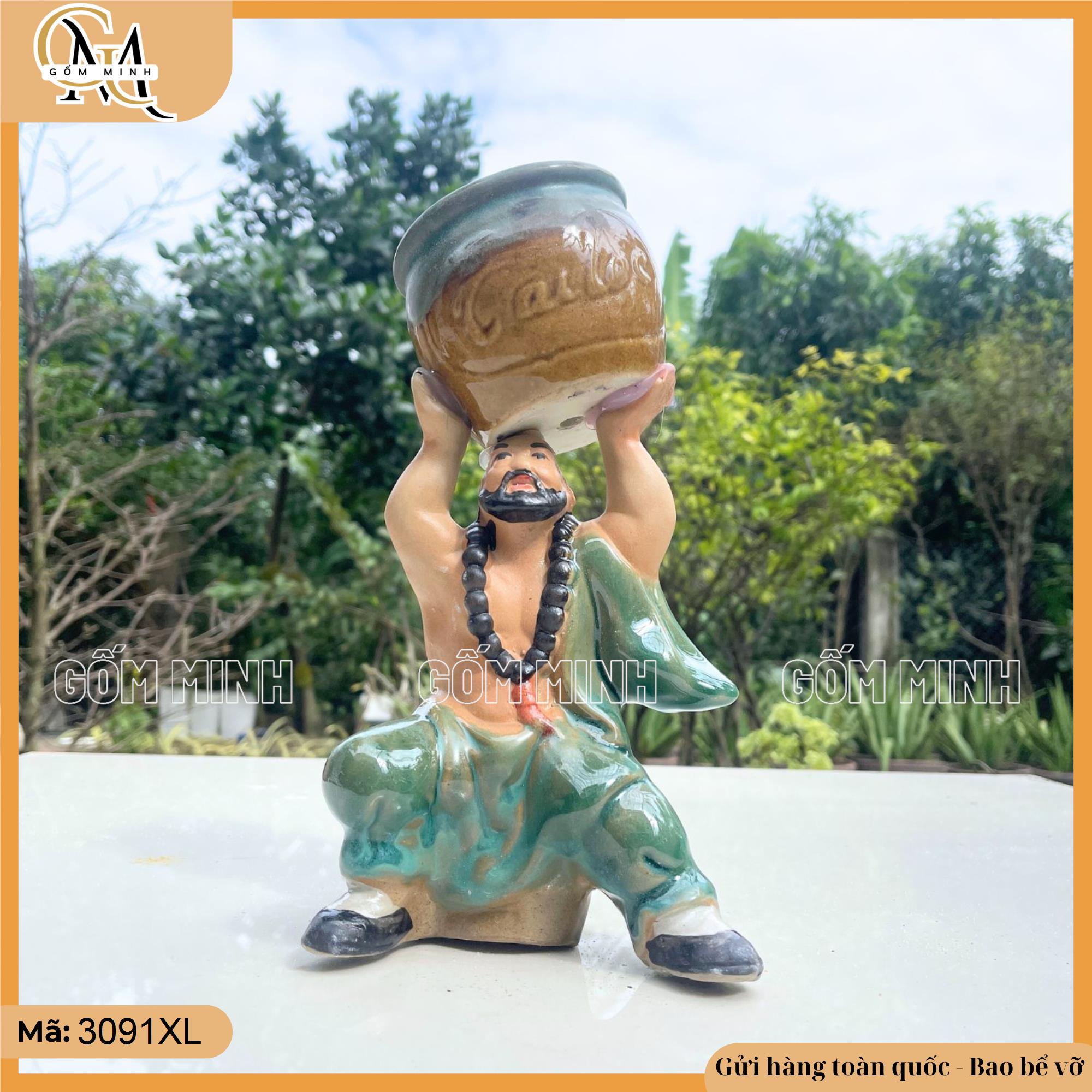 Chậu tượng gốm Bát Tràng Lỗ Trí Thâm, cao 26cm, khắc họa hình ảnh vị hòa thượng hai tay dâng vò nhỏ, mang đến vẻ trang nghiêm và thành kính. Thiết kế tỉ mỉ, tinh xảo, thể hiện rõ nét thần thái của nhân vật. Đây không chỉ là chậu trồng cây mà còn là tác phẩm nghệ thuật độc đáo, điểm nhấn ấn tượng cho không gian. Chậu tượng gốm đẹp được làm từ gốm Bát Tràng cao cấp, nung ở nhiệt độ cao, đảm bảo độ bền và màu sắc bền bỉ theo thời gian.