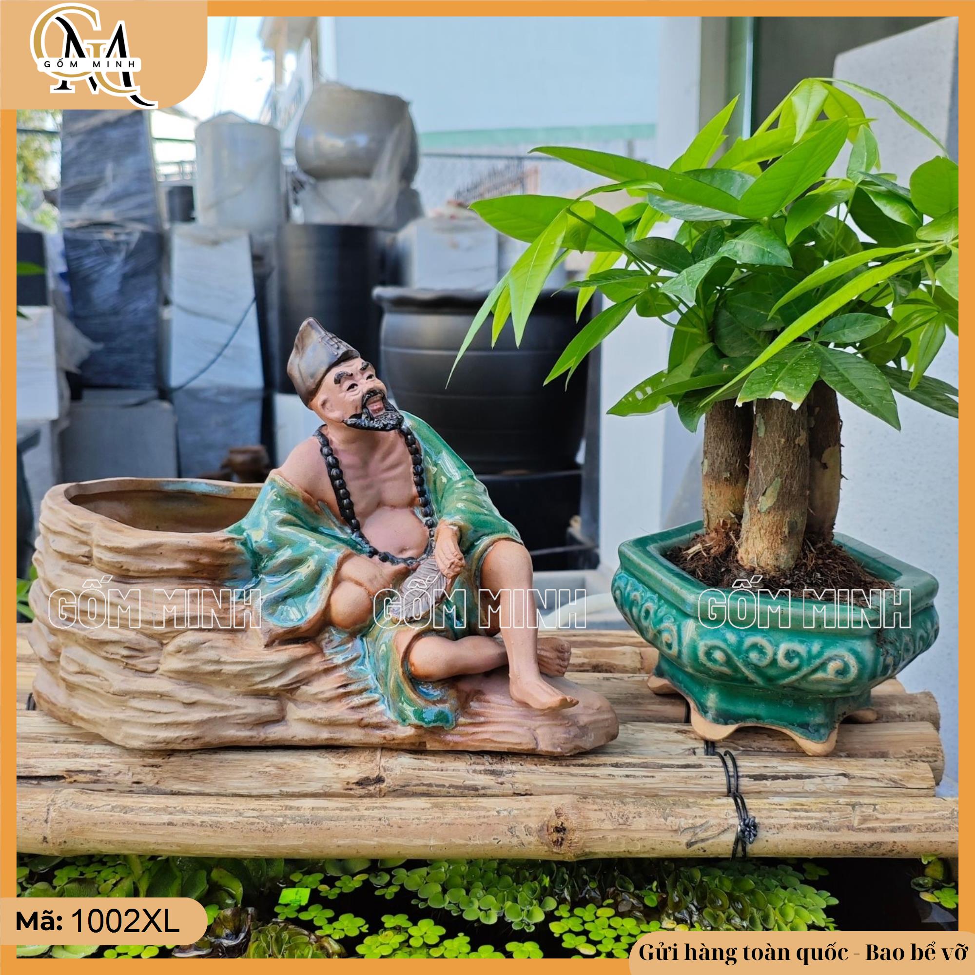 Thiết kế: Chậu tượng Tế Công được chế tác từ gốm Bát Tràng, nổi bật với hình ảnh Tế Công – một vị thiền sư nổi tiếng trong văn hóa Á Đông. Từng chi tiết từ khuôn mặt, trang phục đến dáng ngồi của Tế Công đều được khắc họa chân thực, mang đậm nét truyền thống và tinh thần của nghệ nhân Bát Tràng.