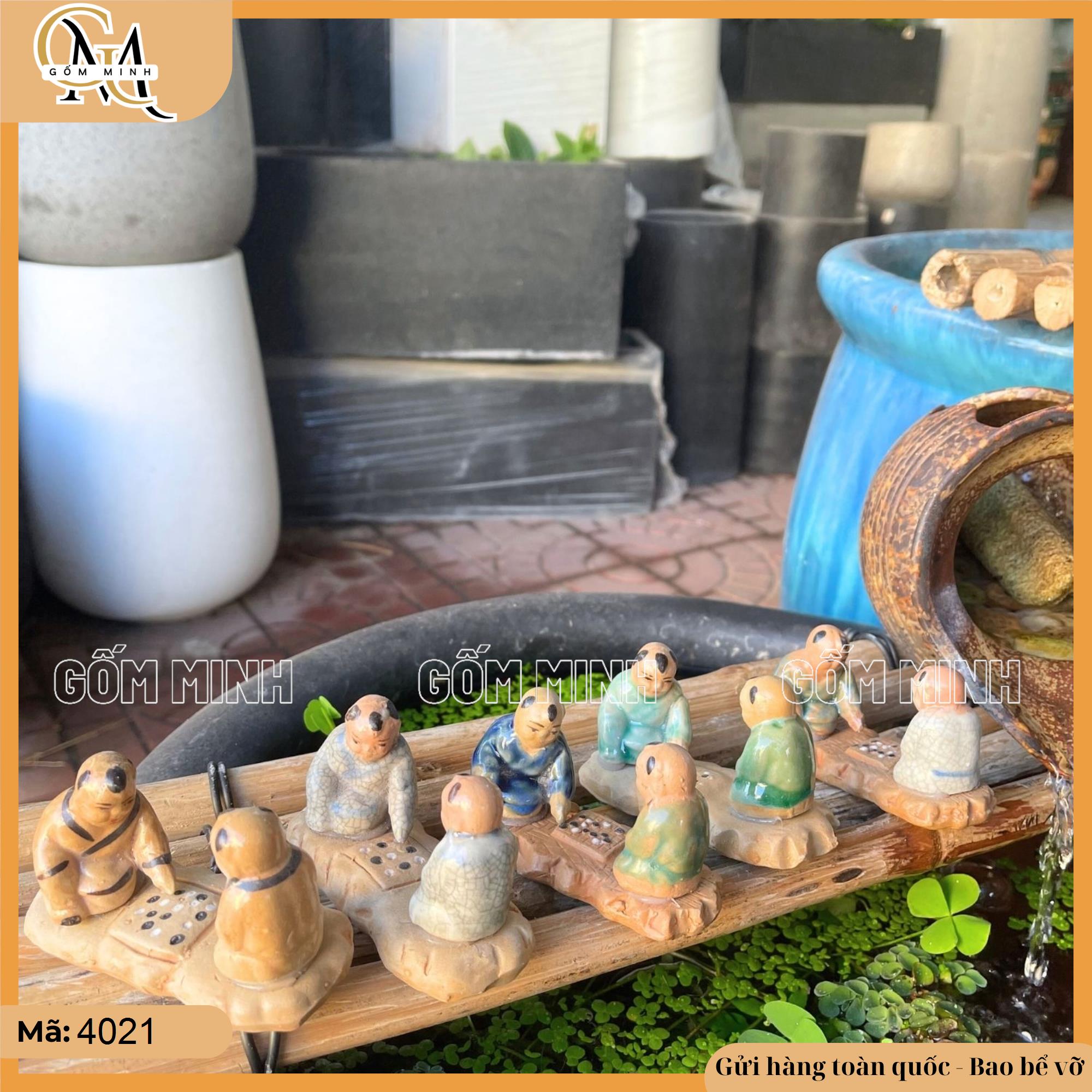 Tiểu cảnh này phù hợp để trang trí bonsai, hòn non bộ, hoặc không gian nhà cửa với phong cách truyền thống. Hình ảnh hai cậu bé chơi cờ mang đến sự tươi vui, nhẹ nhàng và tạo điểm nhấn sinh động cho không gian trang trí. Đây cũng là lựa chọn tuyệt vời cho những ai muốn đưa nét đẹp dân gian vào ngôi nhà hoặc khu vườn của mình, gợi nhớ về những kỷ niệm tuổi thơ và cuộc sống thanh bình.