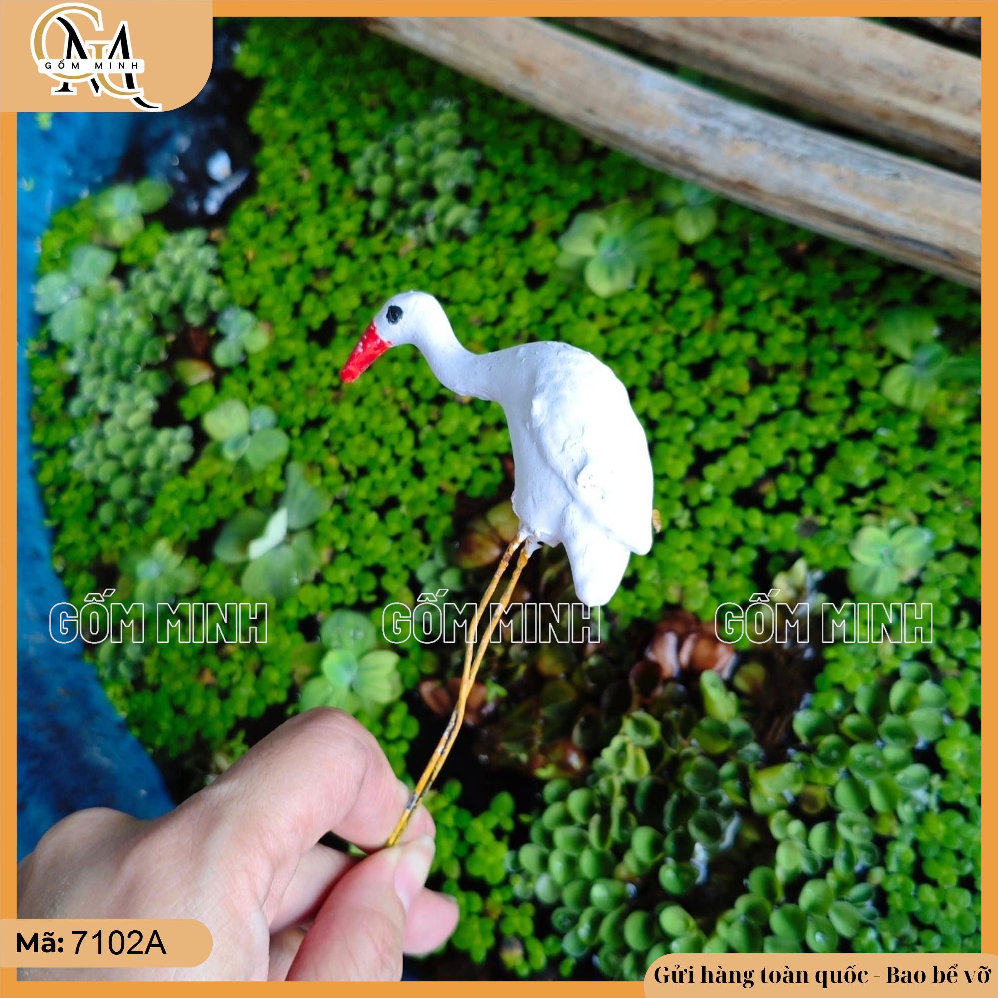 Tiểu cảnh cò túm mini được chế tác từ gốm Bát Tràng, với hình ảnh những chú cò thân trắng muốt, mỏ đỏ nổi bật. Các mẫu tượng cò được làm đa dạng với nhiều tư thế: cò sải cánh bay, cò mò tìm mồi, và cò ngẩng đầu đứng nhìn. Mỗi chi tiết, từ đôi cánh cho đến chiếc cổ dài thanh mảnh, đều được tạo hình tinh xảo, mang lại vẻ đẹp thanh thoát và chân thực. Các tượng cò nhỏ gọn, phù hợp để tạo điểm nhấn cho tiểu cảnh bonsai.