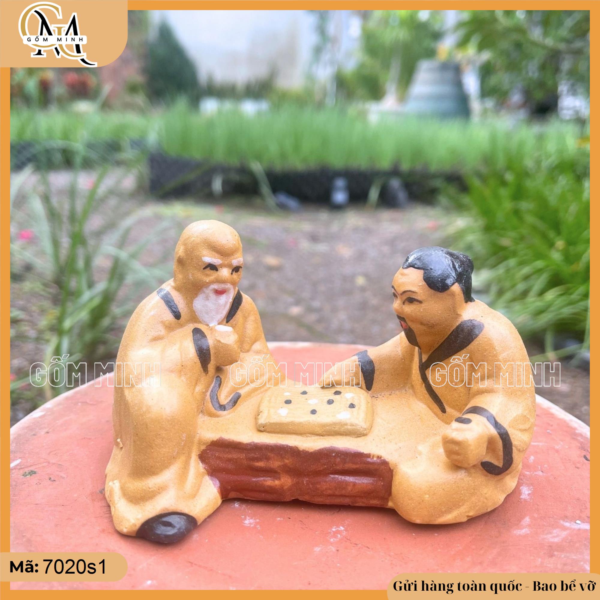 Tiểu cảnh 2 ông đánh cờ rất thích hợp để trang trí bàn trà, kệ sách hoặc góc nhỏ trong nhà. Màu vàng rực rỡ giúp tạo không gian ấm cúng và vui tươi. Đây cũng là món quà ý nghĩa dành tặng cho những người yêu thích trò chơi cờ, thể hiện sự trân trọng đối với trí tuệ và tình bạn.