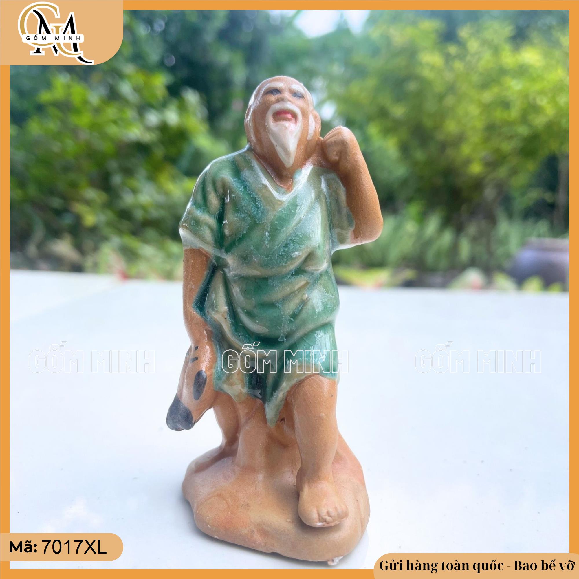 Tiểu Cảnh Ông Lão Xách Cá - Gốm Bát Tràng