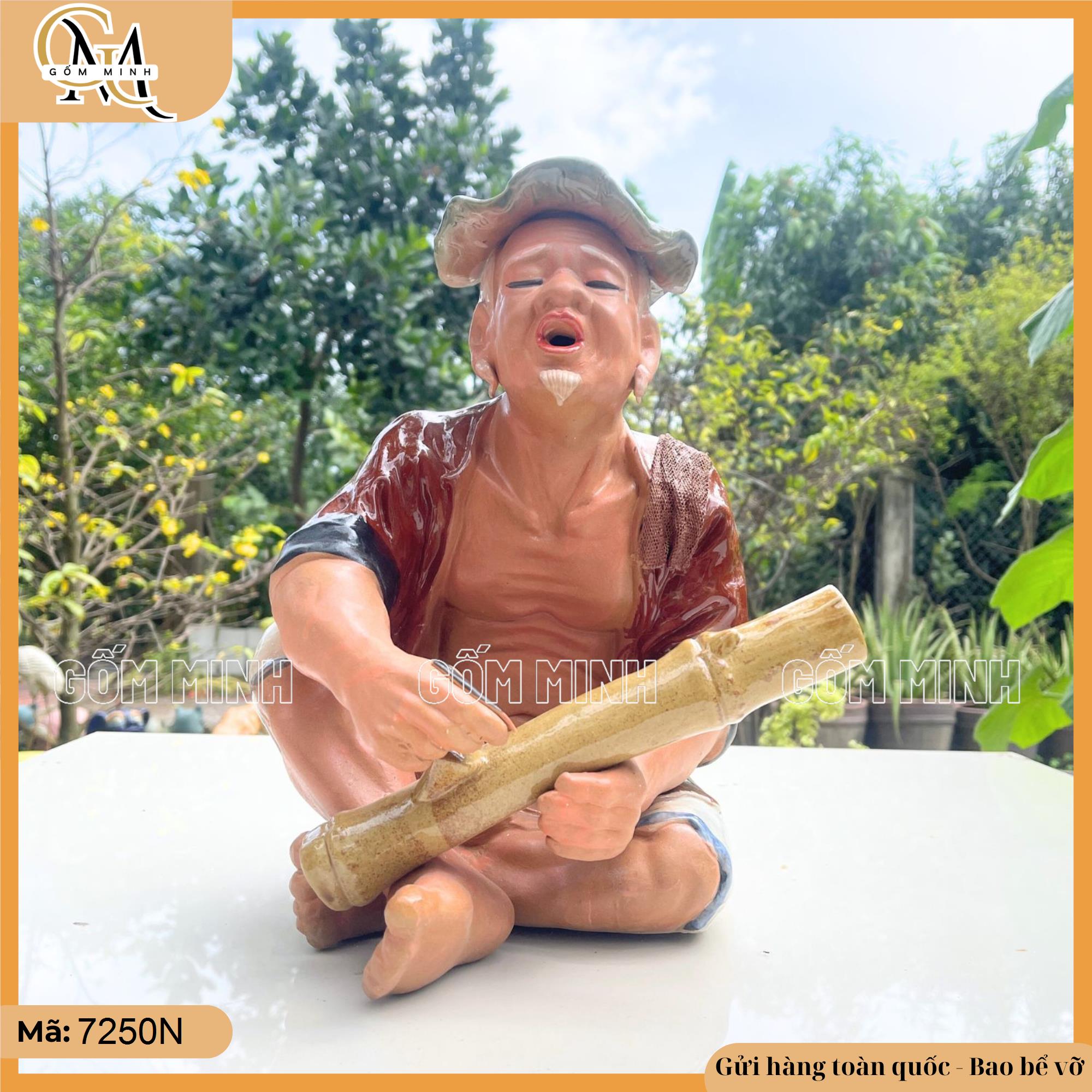 Tượng ông lão hút thuốc lào cao 33cm được chế tác thủ công tỉ mỉ tại Bát Tràng. Từng đường nét trên khuôn mặt, nếp áo đều được khắc họa chân thực, thể hiện sự am hiểu về văn hóa Việt. Chất liệu gốm sứ cao cấp tạo nên vẻ đẹp cổ kính, sang trọng cho tượng gốm đẹp.