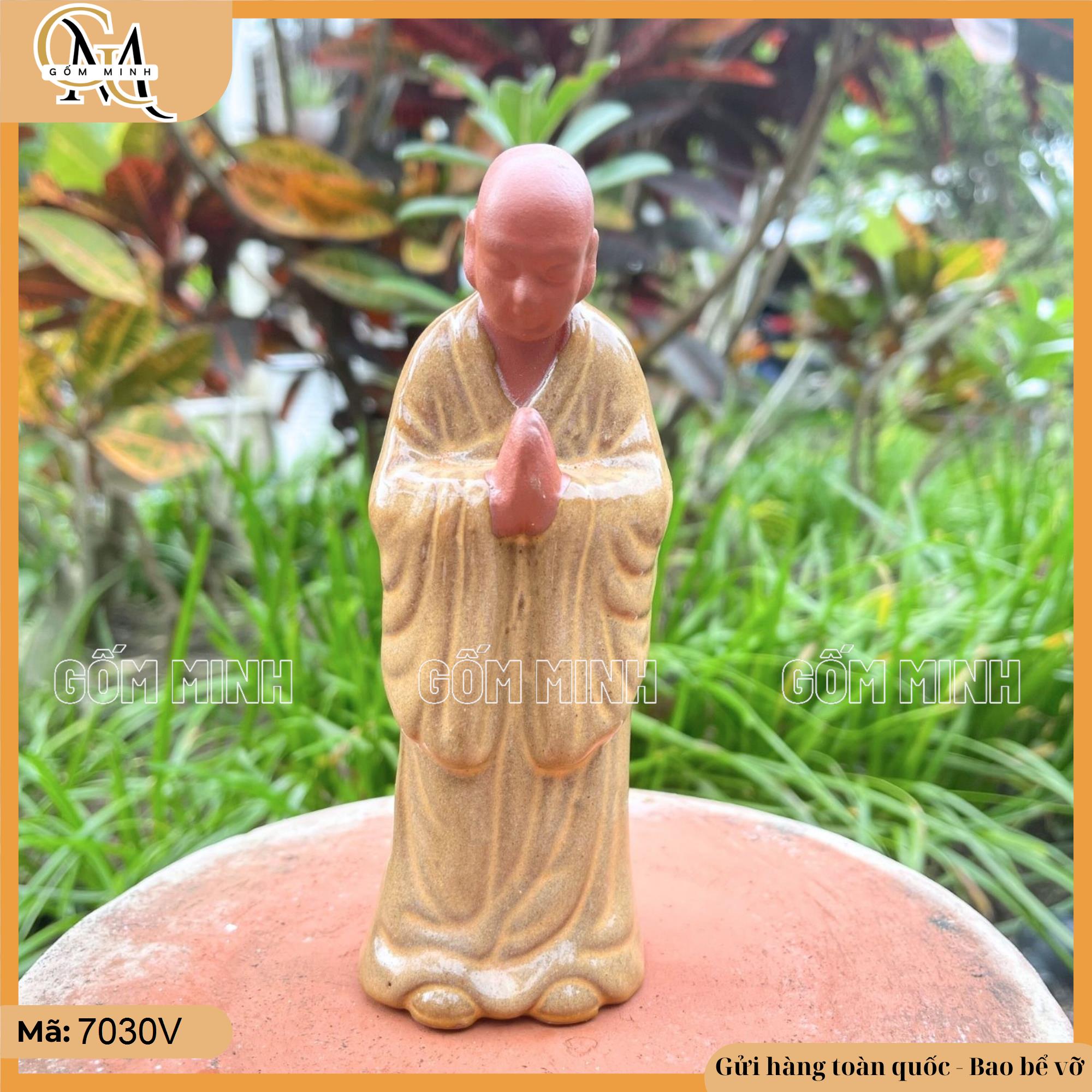 Tượng tỳ kheo đứng chắp tay mặc áo vàng là món đồ trang trí lý tưởng cho không gian bàn thờ, kệ sách, bàn làm việc hoặc tiểu cảnh bonsai. Tượng không chỉ giúp tạo không gian thanh tịnh mà còn mang lại năng lượng tích cực, sự thư thái và thanh thản cho người nhìn. Đây cũng là biểu tượng nhắc nhở về con đường tu tập và sự an lạc trong cuộc sống.