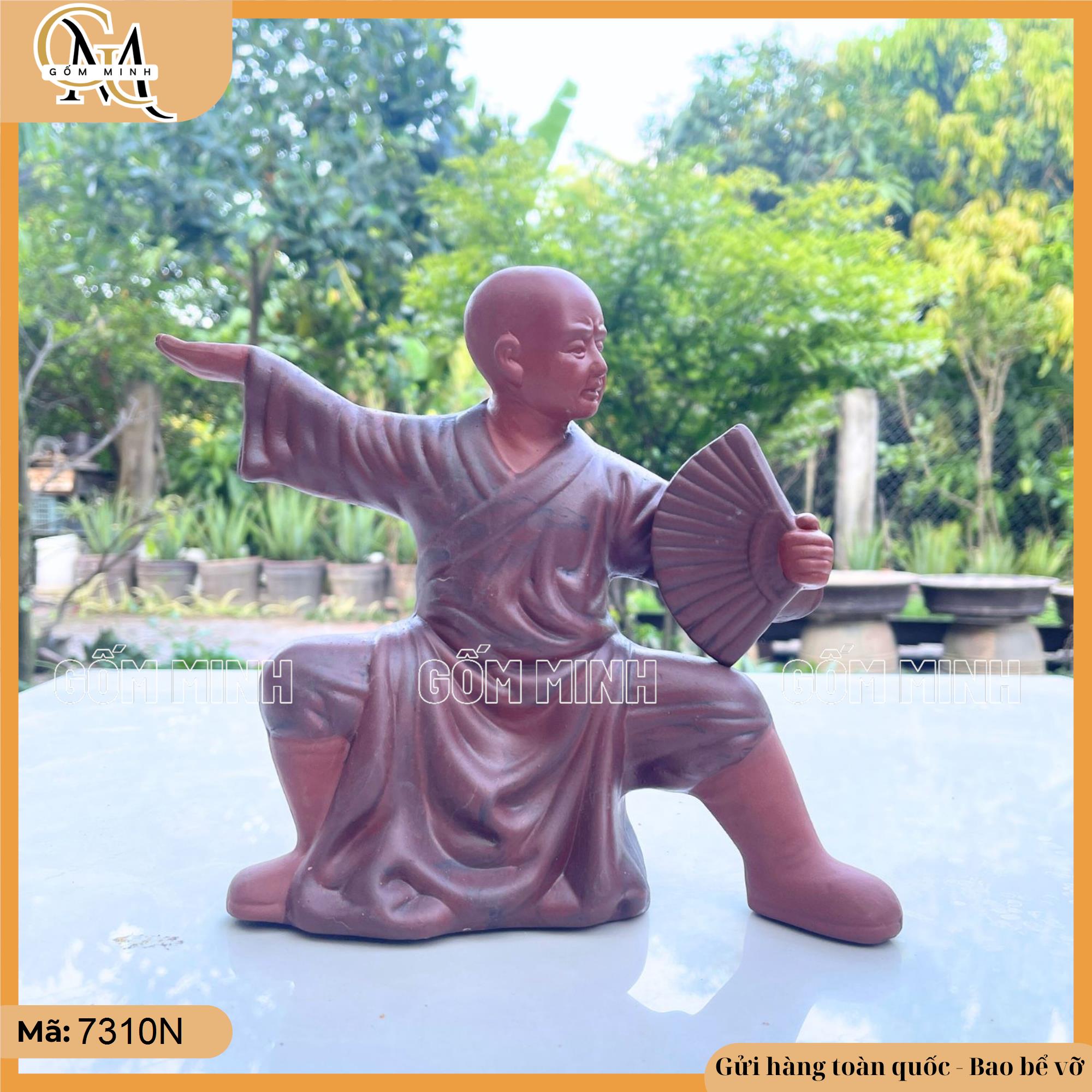 🔸 Thiết kế: Tượng võ sư múa quạt cao 21cm được chế tác từ gốm đất đỏ Bát Tràng, tái hiện hình ảnh võ sư trong tư thế thi triển chiêu thức, tay cầm quạt uyển chuyển đầy khí chất. Các chi tiết như nếp áo, dáng đứng, thần thái gương mặt đều được khắc họa sống động, chân thực. Gốm đất đỏ mang cảm giác mộc mạc, cổ kính và đậm chất nghệ thuật.